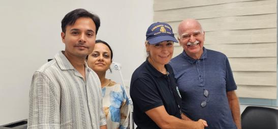Ο Καθ. Ι. Παλλήκαρης, ο Dr. Vardhaman Kankaria και η Dr. Shurtika Kankaria εξετάζουν ασθενείς στην Σχοινούσα των Κυκλάδων, Αύγουστος 2024.