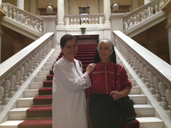 H κ.Β.Τερζάκη Παλλήκαρη και η υφάντρα κ.Κ.Κουρίνου της Αποστολης Πηνελόπη Gandhi στο Προεδρικό Μέγαρο