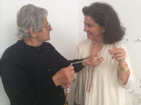 Η κ.Β.Τερζάκη Παλλήκαρη με την υφάντρα κ.Ηλιάκη στο χωριό Φρε Χανίων